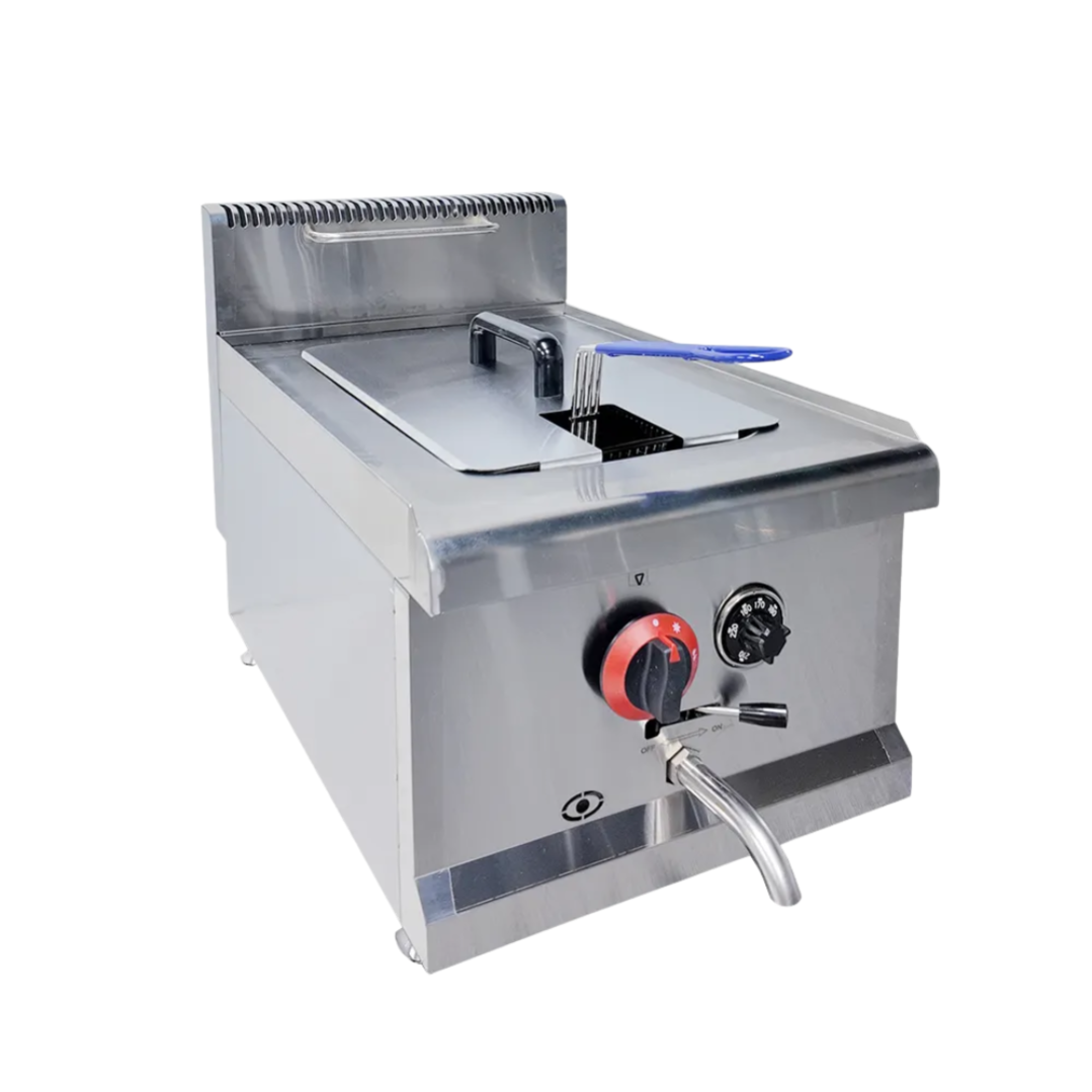 Fry with confidence and efficiency using the 14L Stainless Steel Gas Deep Fryer, a powerful and durable solution designed for commercial kitchens, food stalls, and restaurants. With a generous 15-liter oil capacity, this fryer can handle high-volume frying needs, delivering consistently crispy and golden results.