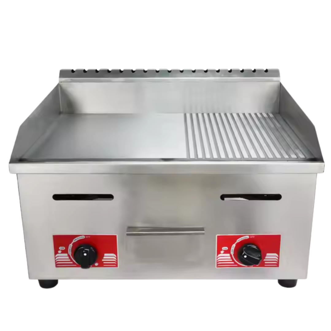 Enhance your kitchen's cooking capacity with the Flat Top Gas Griddle for Restaurants, built to deliver consistent performance in high-demand commercial settings. With a powerful heat output of 37.8Tu/Hr, this griddle is ideal for preparing everything from breakfast items to burgers, sandwiches, and stir-fry dishes quickly and efficiently.